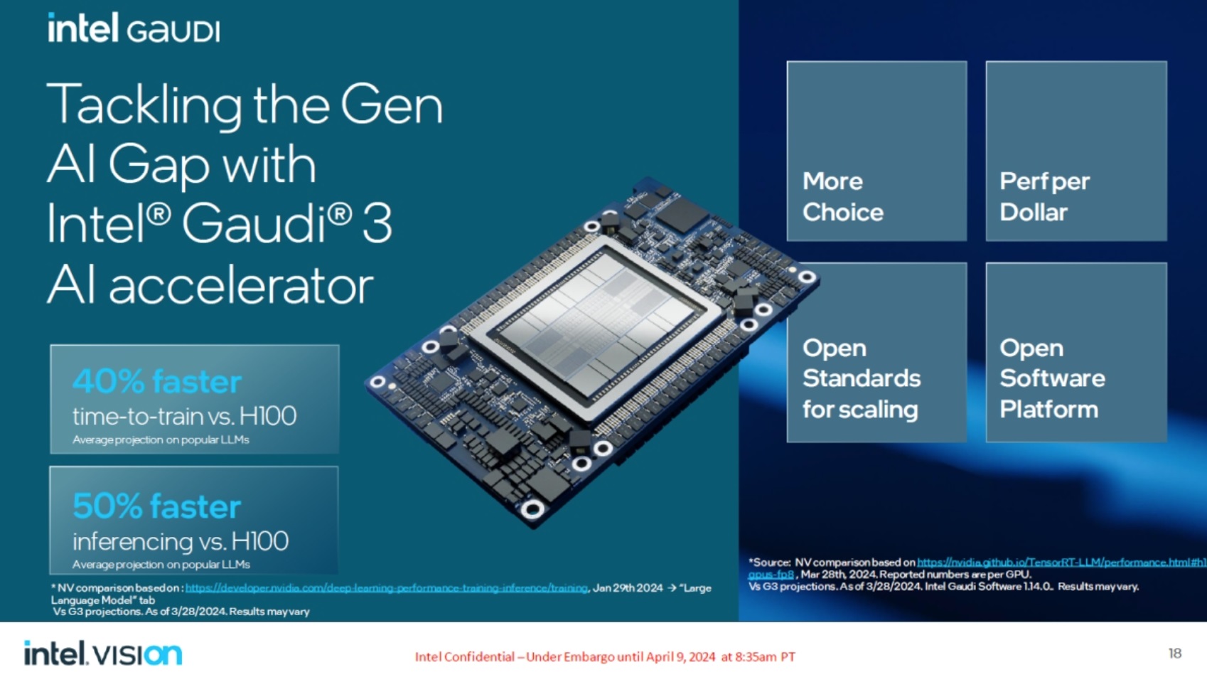 ただし、一つ大きな問題点がある。それは、Gaudi 3の競合製品としてNVIDIAのクラウド/データセンター向けGPUの「H100」と「H200」を挙げた点だ。