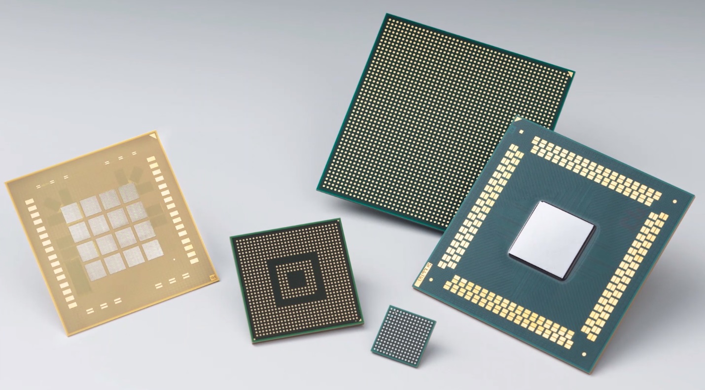 その代表的なものが「サブストレート」という半導体を「製品」として使う配線基板のようなものだ。ご想像の通り、シリコンウェハー上に配線加工されて四角く切り出され状態のままでは半導体チップ(ダイ)は使えない。それを配線基板に張り付けて、金線で配線して初めて通電して使えるようになる。その時に使われるのがサブストレートだ。写真で示すと下記のようなものとなる。画像をクリックすると凸版印刷のWebページに飛ぶようになっているが、同社の作るものはFP-BGAというロジック回路系の精密はサブストレートで、もっともっとローエンドなものもある。ただここではイメージを掴んで貰えればOKだ。