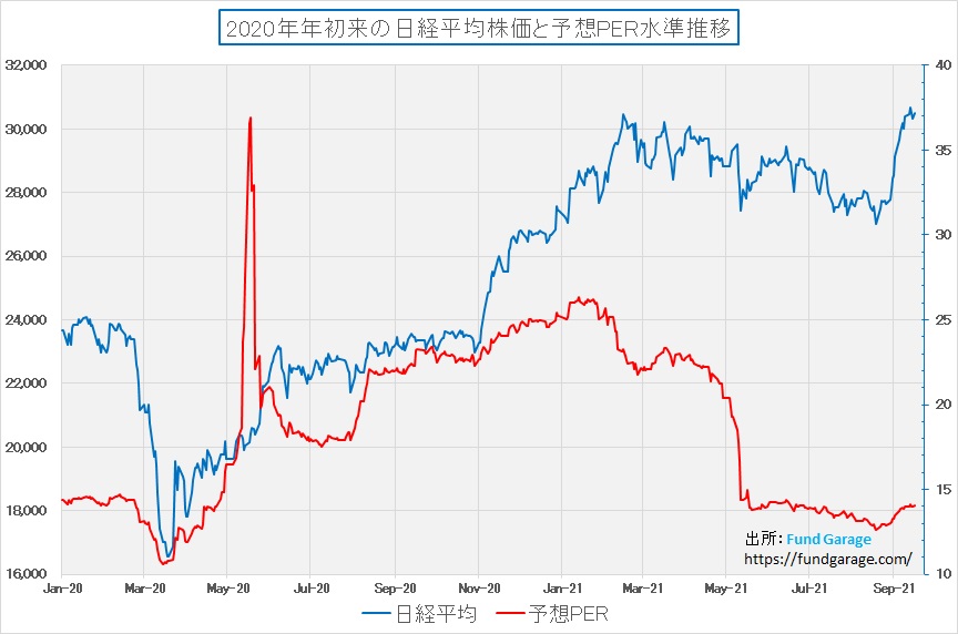 だが上昇は続いてきた。一方で日本株市場は2月中旬に最高値を付けた後は下落した。ファンダメンタルズを示すPER*1は一気にピークの半分程度にまで低下したにもかかわらずだ。