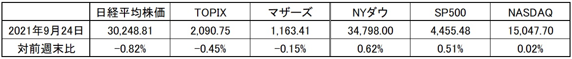 一週間の騰落率で見ると、米国株式市場は3指数揃ってプラスで終わり、日本株式市場はマイナスで終わった。ただ後掲するチャートを見て貰えば分かるように、日経平均株価が22日の水曜日につけた安値からの戻りという意味では、675円(+2.28%)も24日の1日の取引で値を戻したことになる。如何に市場がパニック的に買い戻したのかよく分かる。