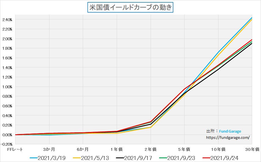 Fund Garageで殊更取り上げもしなかったのは、中国恒大集団の件でこうした債券市場の動きに影響を及ぼすことが無かったからでもある。頻繁にイールドカーブの件は話題にしているが、その変化に影響を及ぼす材料となったことは無かったので、事実認識はしていても脇に置いておいたという意味だ。
