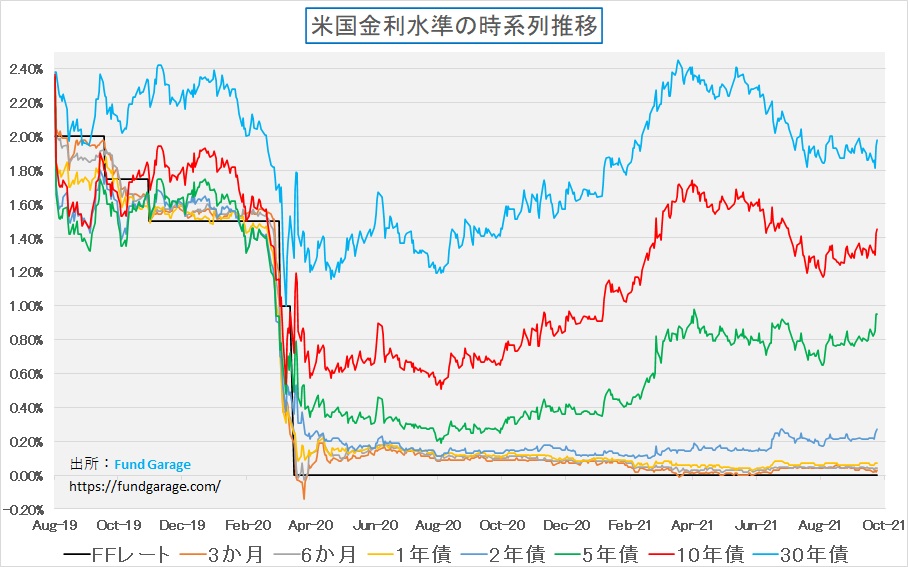 確かに金利はFOMCでのテーパリングの話を受けて上昇しているが、今年の高値にはまだまだ及ばない。別な言い方をすれば、テーパリングの開始、そしてその後の利上げを睨んで「徐々に」上昇するトレンドの中にあるだけということだ。