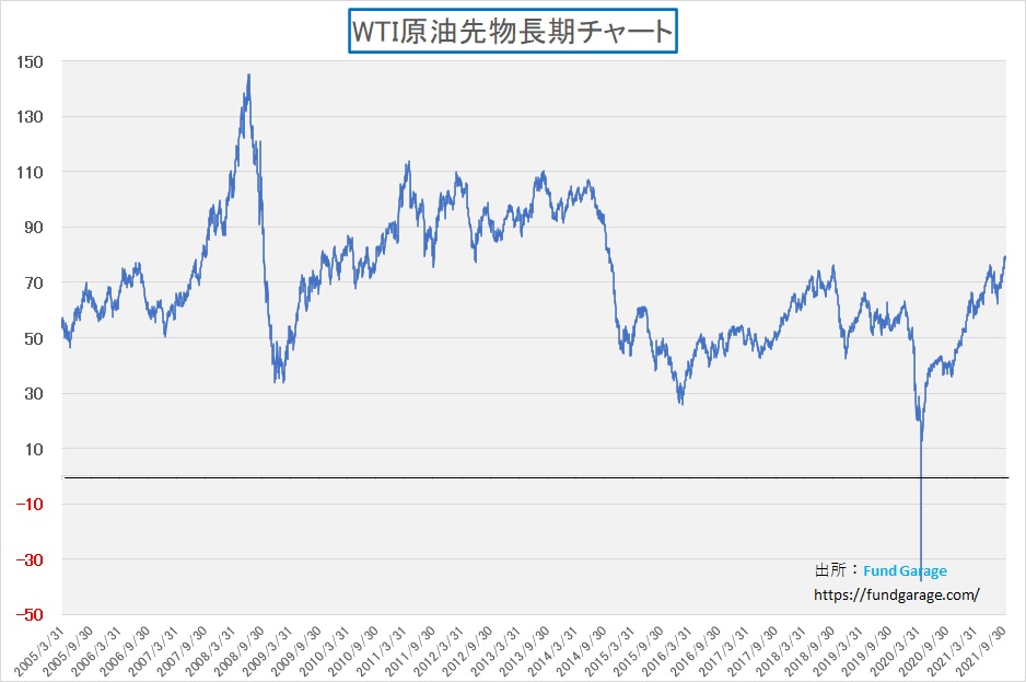 WTI原油先物価格の値上がりが続いている。週末現在の79.35ドルという水準は、過去に遡って2018年の水準は既に超えており、2014年の秋口にまで戻らないと突き当らない。そしてそこまで遡ると、2011年初めから2014年終り頃までの約3年間は原油価格は90ドル台前後で推移していたことが分かる。