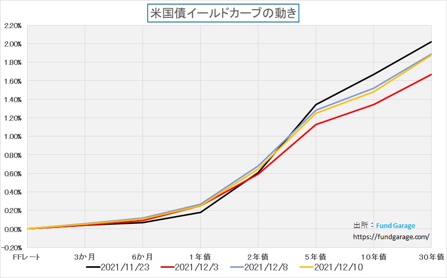 既に株式市場はテーパリングの加速と利上げの前倒しを予見している、というよりは覚悟して待っているという感じだろうか。ただ債券市場はまだまだ半信半疑なようだ。オミクロンに関してはワクチン接種を3回行えば効果は高いこと、またオミクロンは感染力は強いが重症化率は低いということなどがわかりつつあり、デルタ株で一気に市場が冷え切った状況とは違うようだ。