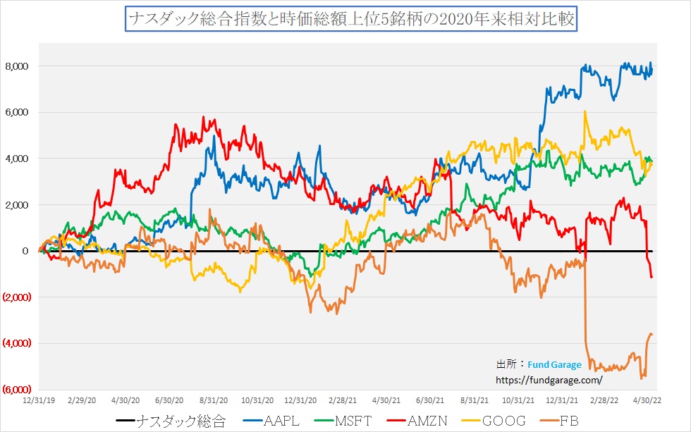 GAFAMとの比較ではamazonだけが落ちこぼれ