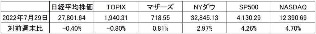 やはり市場機能というのは素晴らしいと今回あらためて思ったのは、タカ派のFRB地方連銀総裁が何を言おうと、メディアがインフレと「利上げ礼賛を連呼」しようと、米国債市場が実際に数値として示しててきたイールドカーブの動きは、レポートでもくどいほど追い続けてきたように、常に冷静に真実を伝えていたということ。そしてそれに同調するかのように、先行指標としての株式市場も上下動をしてきたということだ。まずは先週の株式市場の騰落率を見てみよう。