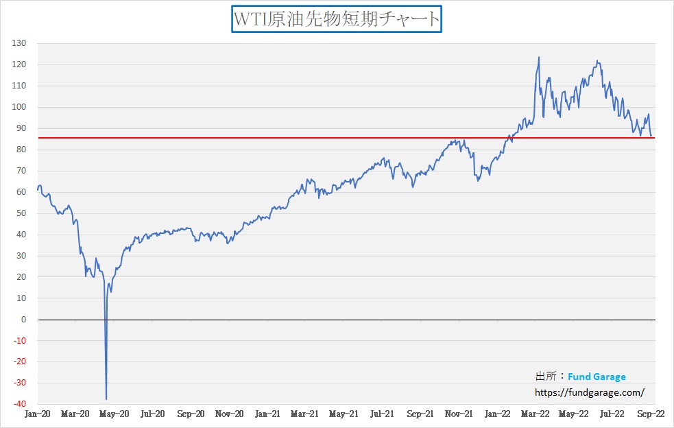 そんな欧州の現状からか、或いは再度一部地域でロックダウンを開始した中国景気の影響からか、原油価格の低下が著しい。つまり需要の低下を織り込んでいる。一部には、外貨獲得の為にロシアが安値で原油を輸出しており、中国やインドが大量購入者になっているからという話もある。いずれにしても、現状の原油価格は一時期のように120ドルを突破して天井知らずというようなイメージとは正反対の状況にある。