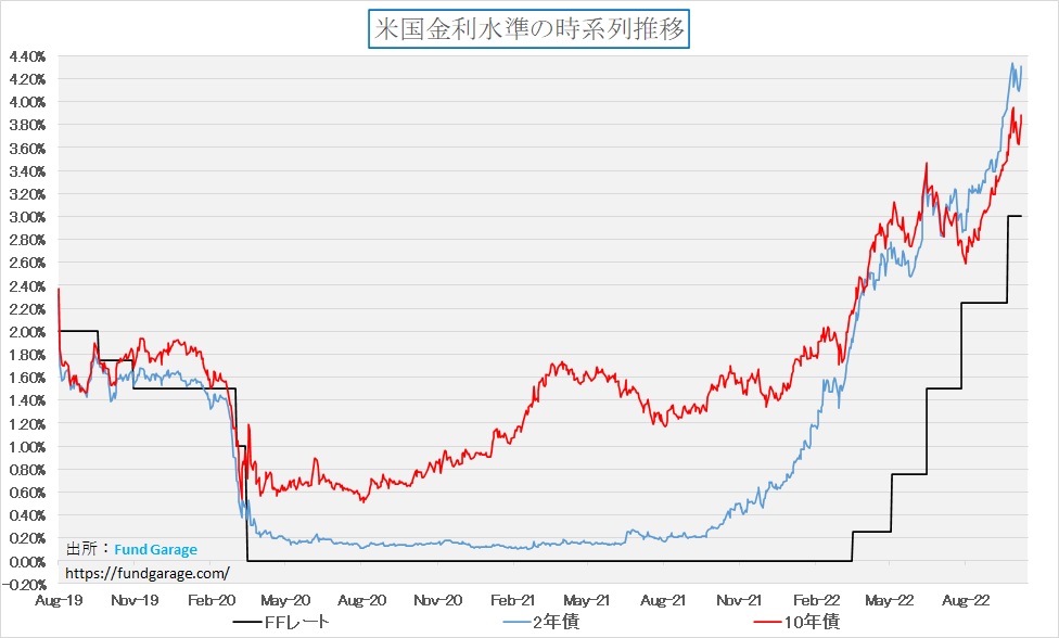 ただこれを受けた金利の動きだが、分かり易いように2年債と10年債だけを抽出したが、最も政策金利の動きを反映すると言われる2年債でも前回9月26日の高値は抜いておらず、10年債金利の方は同じく9月27日の高値をまだ抜いていない。前者が4.31%(26日は4.34%)、後者が3.88%(27日は3.95%)で週末を終えた。