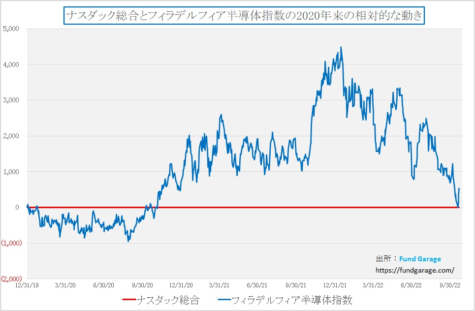 実は喜ばしいことに、テクノロジー株が反転する中で、フィラデルフィア半導体指数(SOX)もナスダック総合以上に上昇した。