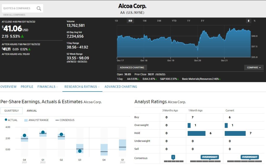 海外投資家はアルコアのファンダメンタルズをどう評価したか