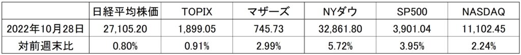 日本市場は前週の下げを取り戻した程度だった。一方、米国株式市場はNYダウがこの2週間で10%以上の値上がり。決算が振るわなかったビッグテックがメインのナスダックでさえ、2週間では7.46%の上昇となった。表には記載していないが、フィラデルフィア半導体指数(SOX指数)も2週間で12.55%もの上昇になっている。その意味では一番上昇したのは半導体関連株の指数といえる。