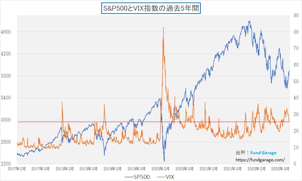 売る人、ショートポジションを狙う人、が新たに出てこなくなれば、株価は下がらなくなる。オプションを買い漁ってヘッジを完了させてしまえば、そのオプションのマーケットメーカーを含めて、新規に売りやショート(基本的に同じ意味)を仕掛けてくる人は居なくなる。またショートのポジションを作るのは基本的にコスト(株を借りてくる金利相当分)が掛かるので、長くは続けていたくない。だからこそ、思ったように市場が下落して利益が稼げないと、徐々に痺れを切らして買い戻してくる。それを如実に表しているのが、お馴染みのS&P500とVIX指数のチャートだ。