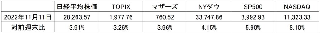 ②株価上昇。特にナスダックが+8.10%、フィラデルフィア半導体指数(SOX指数)が14.87%もの急騰。