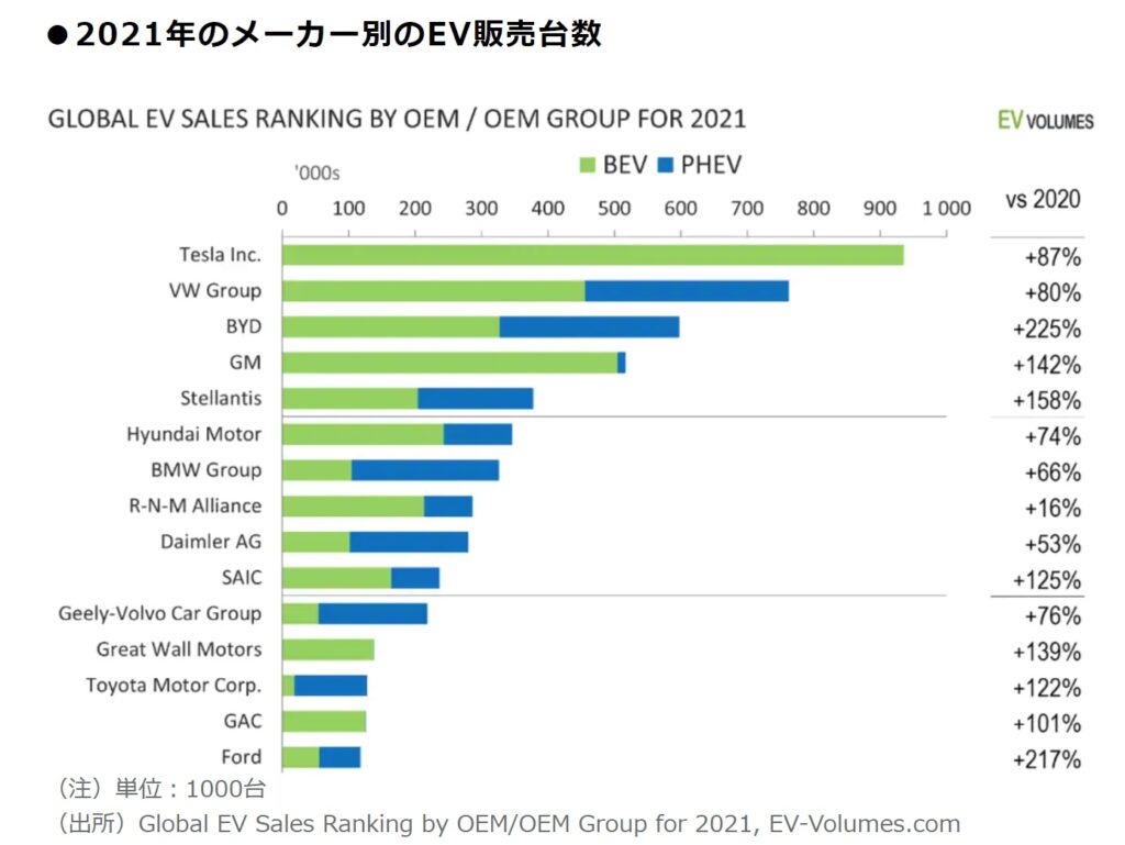 また、環境問題の話なると必ず話題になるのが電気自動車(BEV)だろう。《電気自動車両の充電ステーションの整備》でも触れたが、いま世界で最も電気自動車の普及が発達しているのは中国である。EVの販売台数が圧倒的な米国のテスラでさえ、国内と比べても、中国でのBEV販売台数は少なくない。