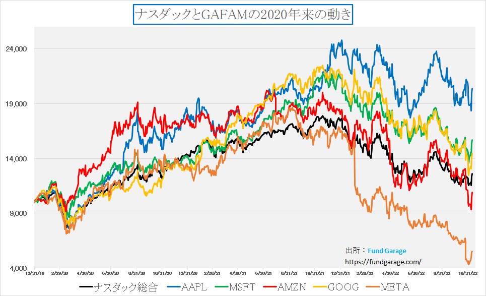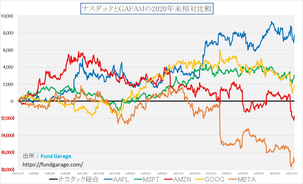 しかし、メタ(META)だけはナスダックの上昇率に勝てていない。