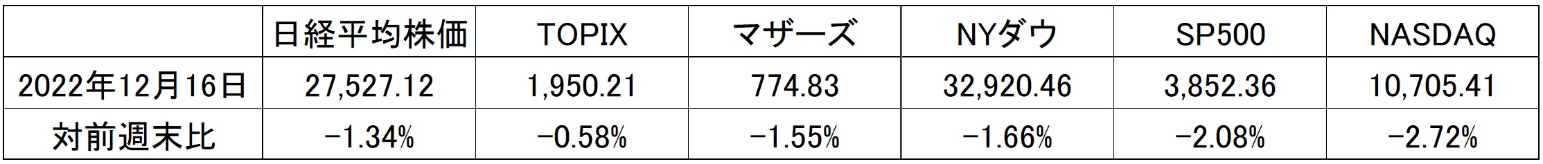 FOMC終了後から週末までの3日間、NYダウで△3.48%、S&P500で△4.16%、そしてナスダックが△4.90%と、それぞれ12月13日(FOMCの初日)の水準から低下した。