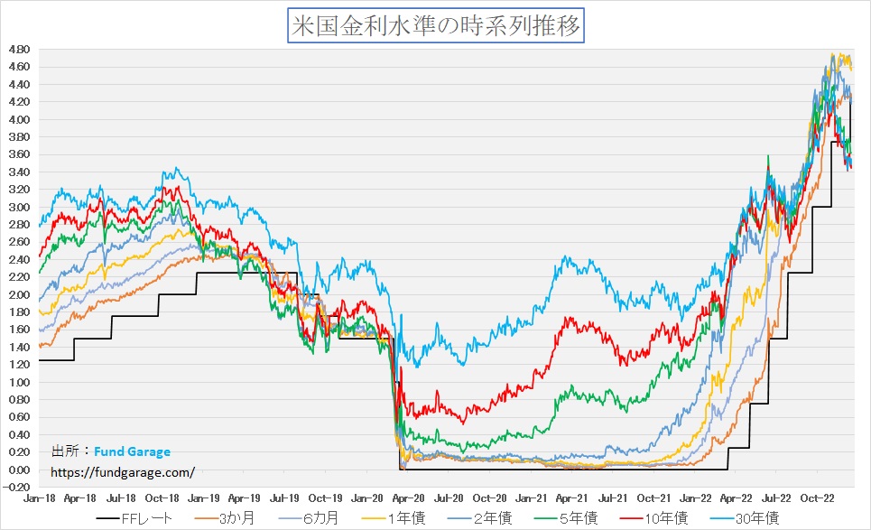 では2022年の利上げの過程で、長短金利がどう推移してきたかを実際の数値を見て確認していこう。