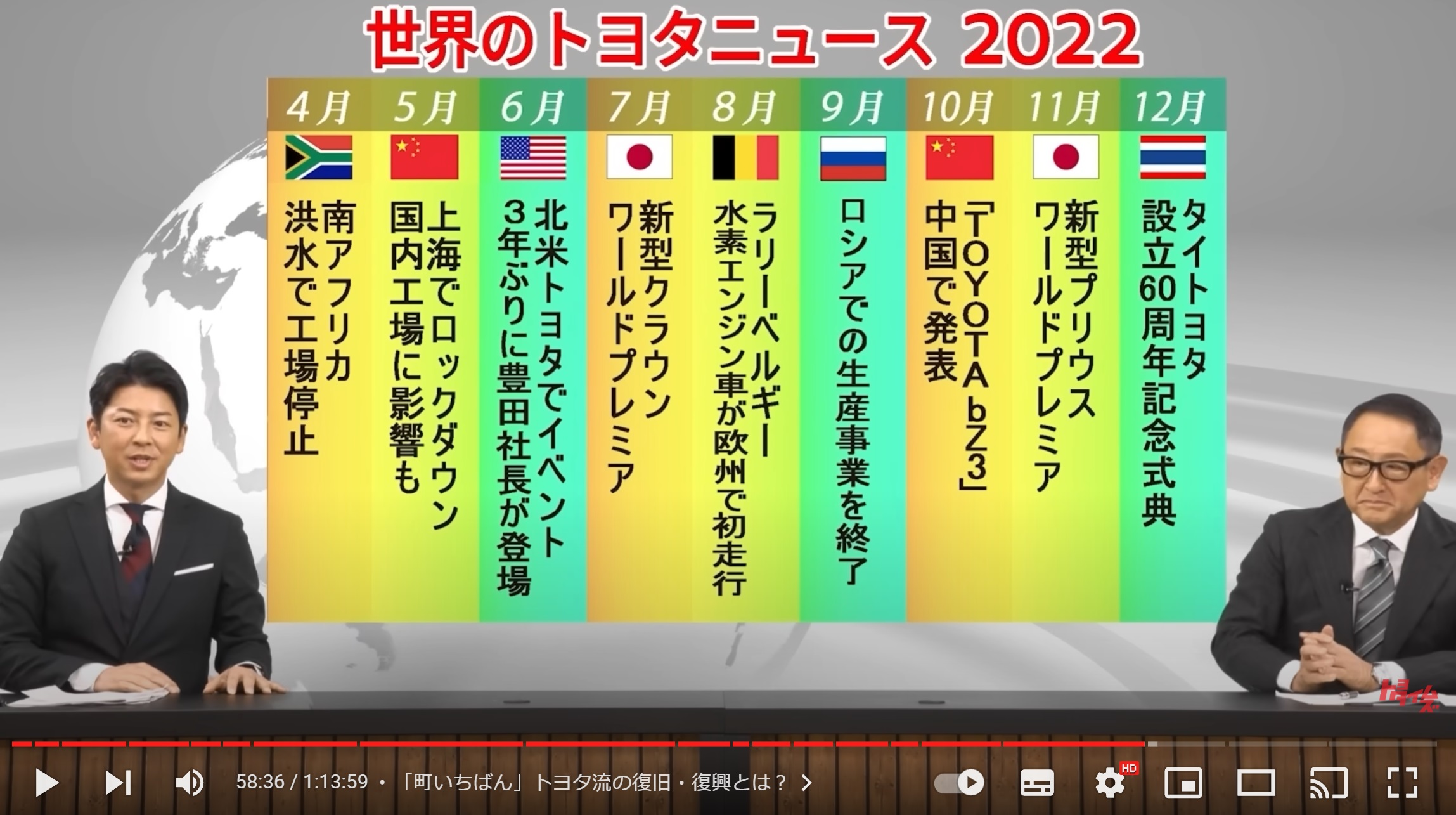 「【豊田章男×富川悠太】激動の2022年を語る「電気?ハイブリッド?水素?カーボンニュートラルの今」「”ロシア生産事業終了”決断の背景」「自然災害とどう向き合う?」たっぷりとお伝えします」という長いタイトルにも見合うだけ、充分に見応えがあるものだった。