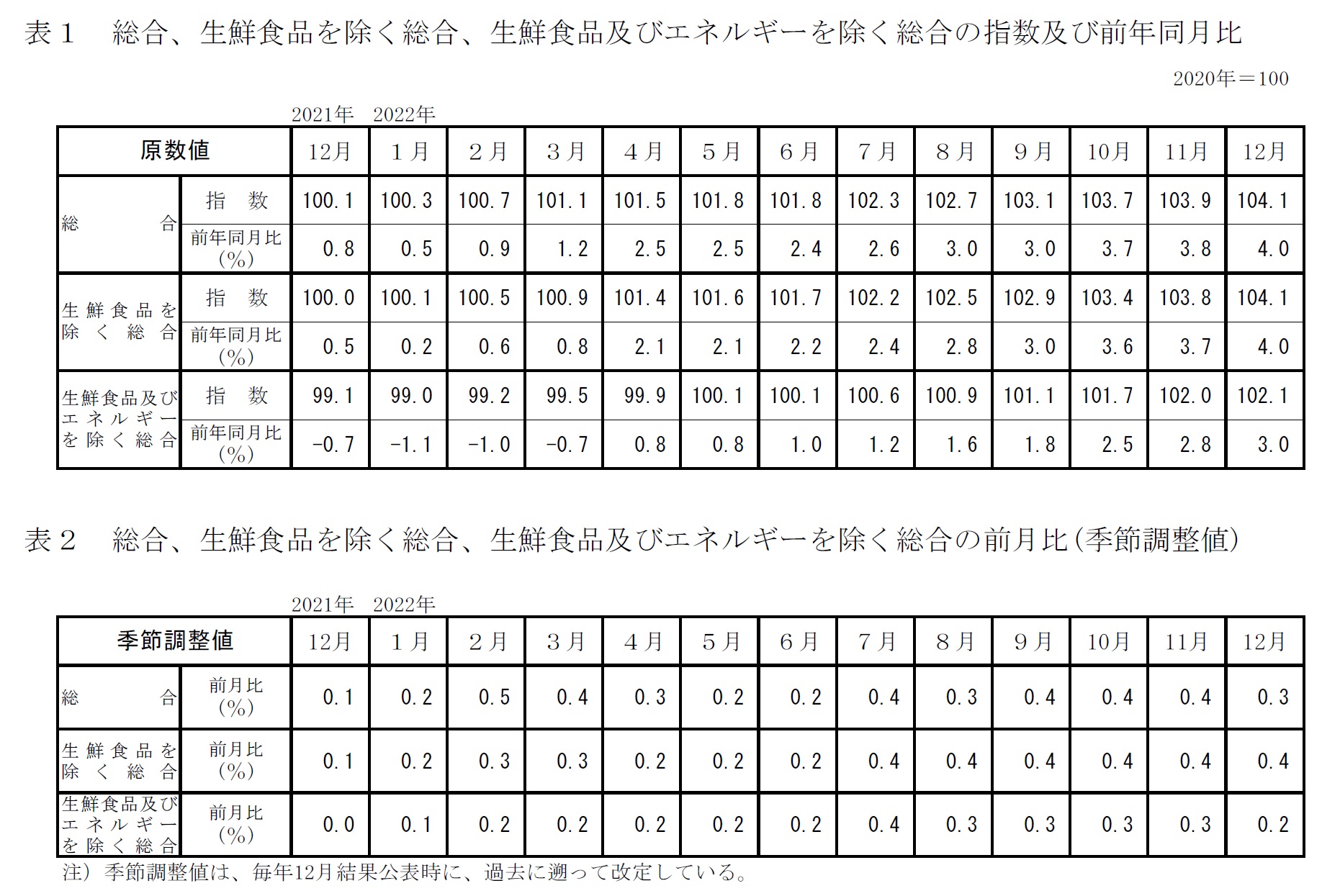 2022年12月の消費者物価指数(CPI)が、1月20日に発表された。