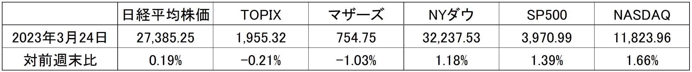 そうした流れを受けて、各市場の先週の騰落率は下記の通りとなった。
