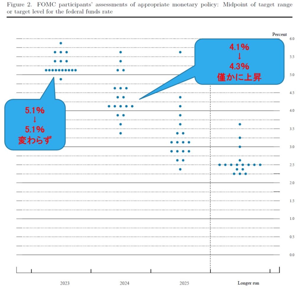 ただし、あらためて強調されたのは、「DODチャートは、FOMC 参加者が今後最も可能性の高いシナリオであると参加者が判断したものであり、委員会の決定または計画ではない」ということである。