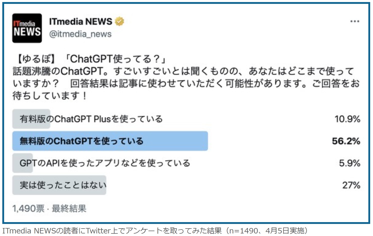 「ITmedia NEWS」というネットニュースで、『みんなどのくらいChatGPTに課金してるの? 読者調査結果』という記事が紹介されていた。