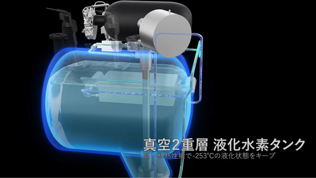 水素を貯蔵するタンクは、真空二重槽の液体水素タンクを使う。こうしないと、タンクの外側にあるものが何でも凍ってしまうからだ。