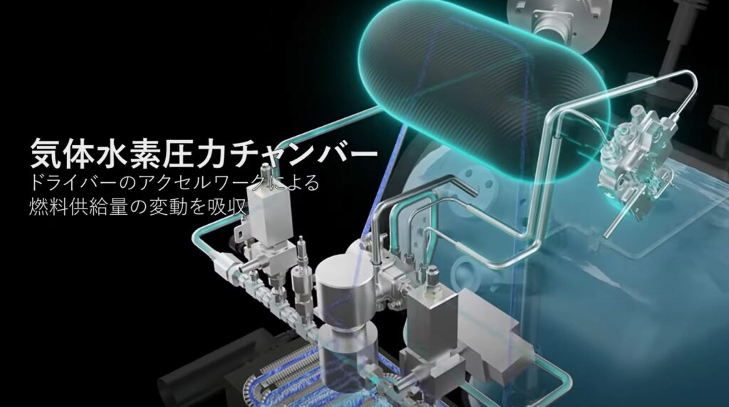 この液化水素を、エンジンの熱を利用して気体に戻す。これがその液体水素気化器だ。