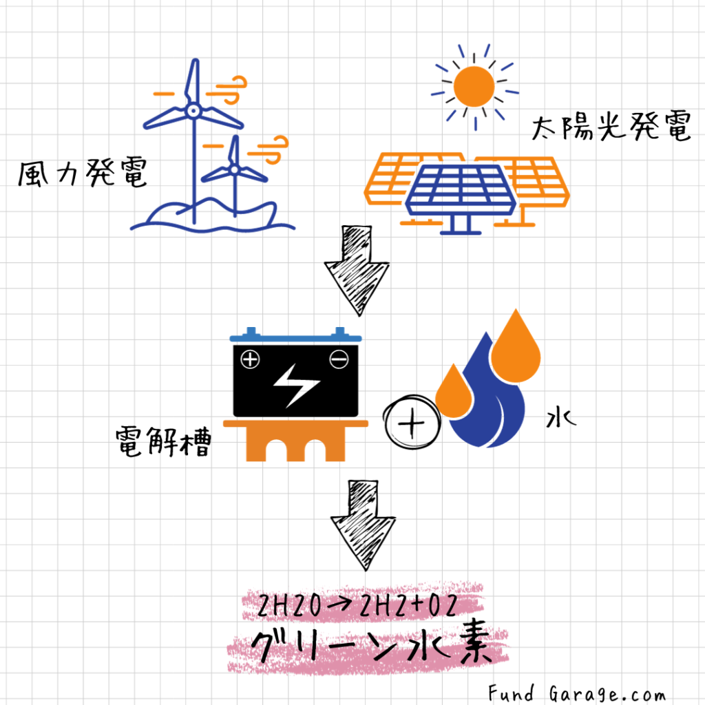 このような方法で取り出した水素を、「グリーン水素」と呼ぶ。