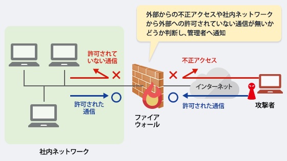 | 侵入防御システム (IPS) | 悪意のあるアクティビティやポリシー違反がないかネットワークおよびシステムのアクティビティを監視し、そのアクティビティを報告・ブロックする。 |