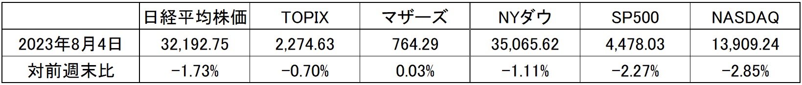 先週の騰落率は以下の通りであった。