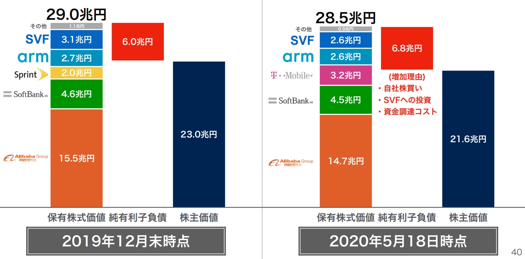 私はソフトバンクグループの主張に同意出来る。投資先が抱える負債については、当然返済義務は投資先にあり、それらを含めて投資先の時価評価がなされている訳であり、それを再度ソフトバンクグループを評価する段階でディスカウントするのは理に合わないからだ。
