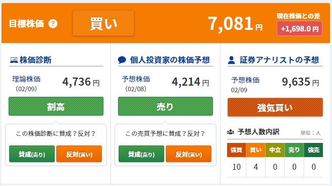 そうして例を挙げたら限がないのだが、その結果として何が起きているかと言えば、下記のような事象だ。この画面に心当たりのある人も居るかと思うが、有名な個人投資家向けのネット情報サイトだが、問題はこの予想株価の個人投資家のそれと証券アナリストのそれの違いだ。何と2倍以上も違う。左側に理論株価なるものがあるので、計算方法を探してみたが明確な答えは無い。AI云々とあったが、コメントを見る限り、かなり人智によるアナログな感じでもある。