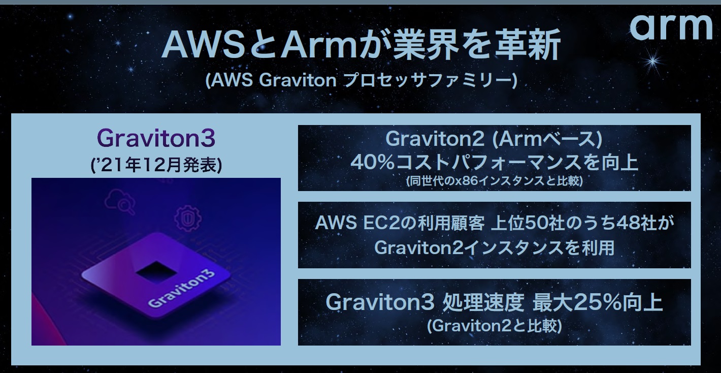 そしてARMはAWSのサーバーに採用され、徐々にサーバーでのシェアも上げている。最大クラウドのCPUに採用されれば、競合もARMを考えるからだ。