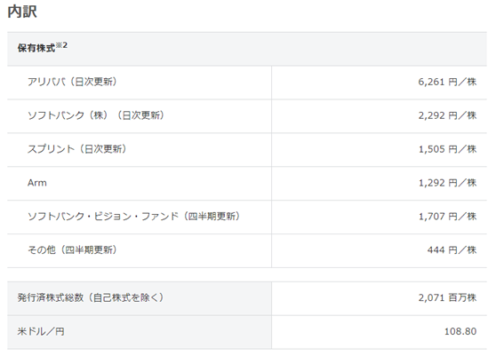 同社を見るのに必要なのは、ある意味では下記の数字だけで良いと思っている。同社は事業会社ではなく、投資会社だ。そして直接投資もしていれば、ビジョンファンドを通じての間接投資もある。ビジョンファンドは当然SBGが全額投資している訳では無い。