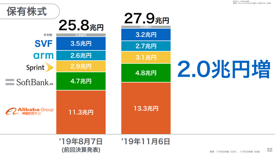 まずひとつ大事なこと、寧ろ一番大事なことかも知れないが、同社は孫正義会長が公言する通り「投資会社」であるということだ。もう事業会社ではない。だから売上だの、経常利益だのという尺度でものを言うのは、この会社のビジネスモデルを全く理解していない事に等しいと思う。野村投信の会社の決算は売上や経常利益を見る価値があるが、野村投信の運用しているファンドに売上高や経常利益に相当する概念があるかと言えば、「無い」「NO」なのと同じだ。
