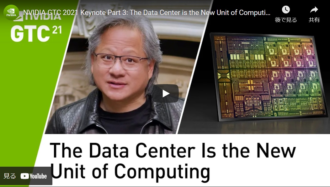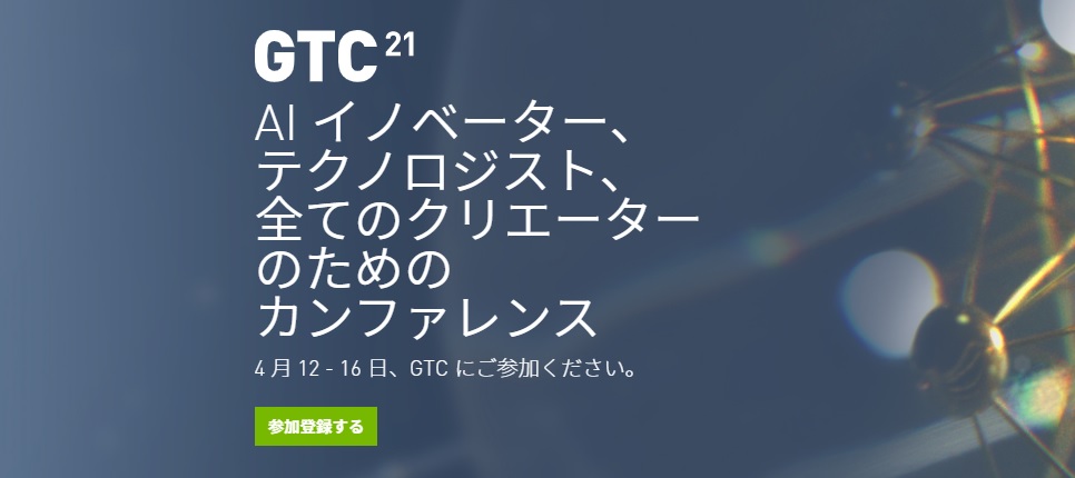 仮想通貨の為のCrypt Mining需要が「いつか来た道」を想起させるのか、否定的な見方が無くは無いが、決算説明会の時にもCEO自ら対策を打っていることを明らかにしている。つまり通常のGPUでは仮想通貨のマイニングには使えないように敢えてチップ設計の中に改良を加え、一方でマイニング需要を取り込むために、専用のチップ設計をしたものを開発している。だが、もっとも注目すべきはそもそもAI向けのGPUの能力だ。その辺りがこの先にどうなるのか、GPUは何処に向かって走るのか、そしてARMの買収計画はどう進んでいるのかなど、今年のGTC21は注目すべき点が一杯だ。今年もオンライン開催となったGTC、是非参加登録して視聴することをお薦めする。全部は当然見る必要が無いが、ジャンセンCEOの基調講演はせめて聞いておきたい。下記画像をクリックすると登録画面に遷移する。