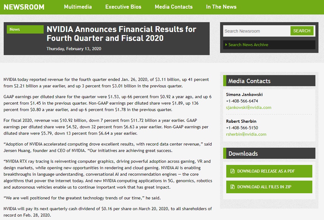 まずはJensen Huang, founder and CEO of NVIDIAに喝采を送りたい。素晴らしい決算だった。2000年前後から何度かお会いもし、また仮想通貨マイニングの特需に振り回された2018年なども見てきたので、今回の決算は非常に素晴らしいと思う。