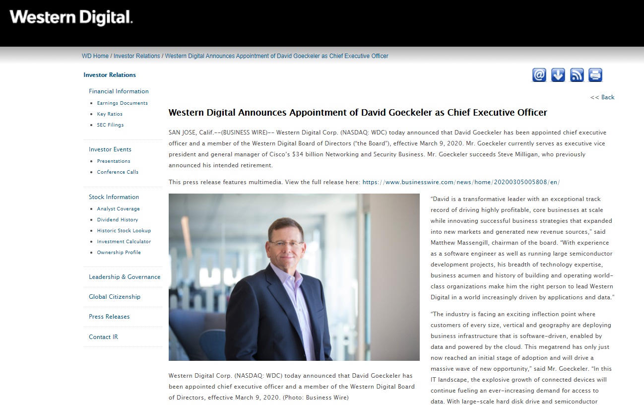 DRAMメモリー(WDCは生産していない)やフラッシュメモリー(WDCの旧SanDisk部門が東芝メモリと一緒に作っている)を使ったSSDの値下がりについての報道を良く耳にするが、必ずしもハイテクの世界において製品のこうした値下がりはネガティブなだけではない。