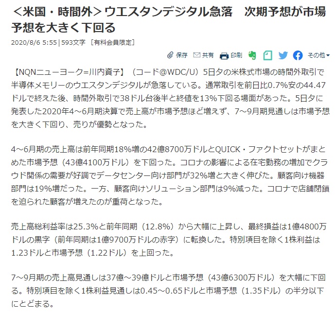 市場には何か「半導体銘柄」を売りたいニーズがあるようにも思えるぐらい、変なとばっちりでもある。寧ろ、COVID-19のパンデミックで一旦止まった自動車のCASEなどが動き出している気配があり、WDCのビジネスには本来朗報な筈。