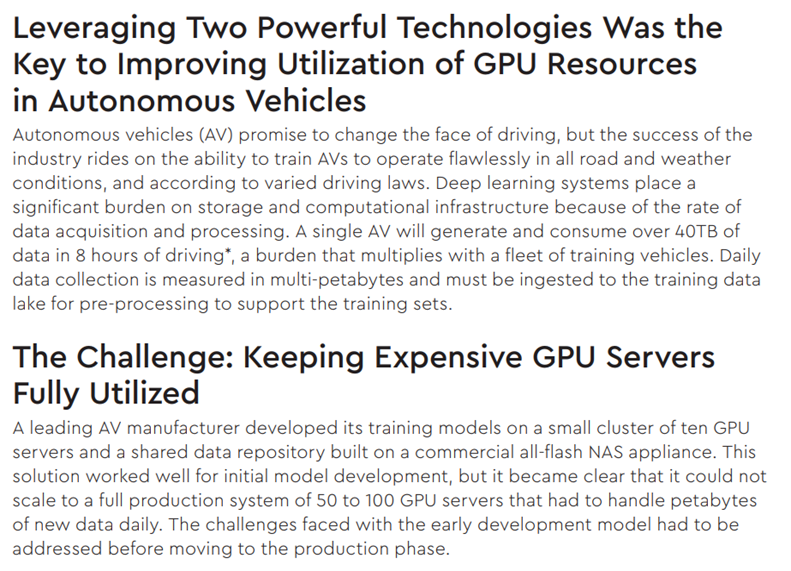 8時間の自動運転で40TBのデータを産み出して消費するというのだから、さてさて、どれだけのストレージ容量が必要になるのだろうか。またGPUサーバーがどれだけ必要かなどの記述もあって非常に興味深い。