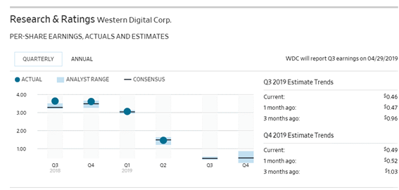 現在のウェスタンデジタルのCEOが今年の2月に代わって、最初の四半期をフルにマネージした段階で、彼は配当を停止した。考え方についてはCEOが明確に説明したが、それは充分に納得性のあるものだった。まずウェスタンデジタルに対する悲観論の最大ポイントはこの無配ということだ。高配当好きの投資家に嫌われた。
