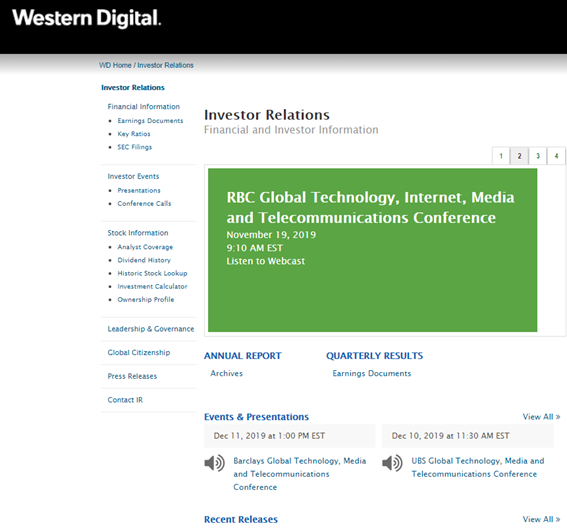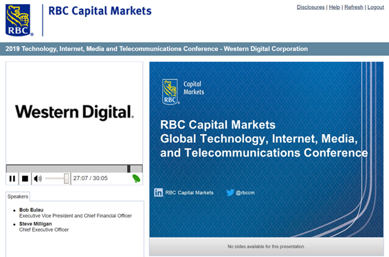 ウェスタンデジタル社も14日のJPモルガンのカンファレンスに続いて、6月5日のバンクオブアメリカのカンファレンスに出るようである。既にIRのWebページ上にWebcastingの場所が準備されていた。