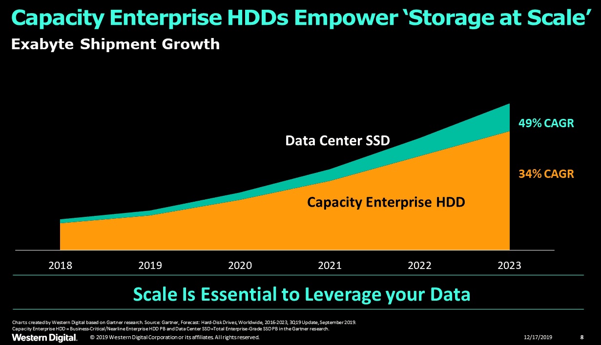前述したように、同社はHDDとフラッシュメモリーだけのつまらない会社ではない。その証左の一つが現地11日に発表した「Zoned Storage」だ。話を専門的にし過ぎても仕方がないので、簡単に説明すると、IDC(米国の調査会社)によると、2023年以降には、企業、機械、産業、消費者、科学などが年間103ゼタバイトを生み出すという。