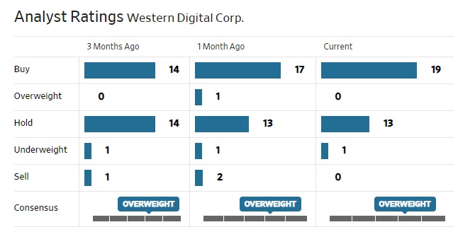 カバリング・アナリストであるMark Miller氏が、WDCのマネージメントとのCallの後で、レーティングをHoldからBuyに引上げ、ターゲットを$60とした。背景は、18TBのHDDが増え始めており、またSSDについても法人シェアを増やし続けているということ。また112層のBiCS5 NANDも順調に立ち上がっているという。これはまだ他社が苦労している最先端品である。年後半には景気回復と5Gの立ち上がりにより、スマホ需要も伸びると予想されることから、アナリストは強気に見ているようだ。