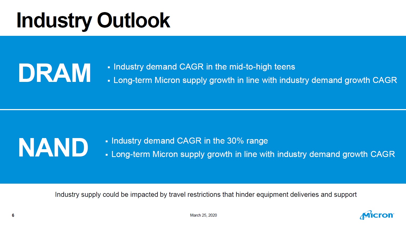 現地29日の引け後に競合のマイクロンテクノロジー(MU)の決算発表があり、内容的に非常に良好なものであった。当然同業であるウェスタンデジタルにも好影響があるが、まずは背景となる市場環境を同社の決算説明資料より見てみたい。