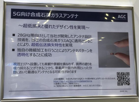 そうなるとやはりロームや村田製作所、或いはTDKなどの電子部品だけが対象になるのかという話になってしまうが、面白いものを先日の「人とクルマのテクノロジー展」のAGC(旧旭硝子)のブースで見つけた。