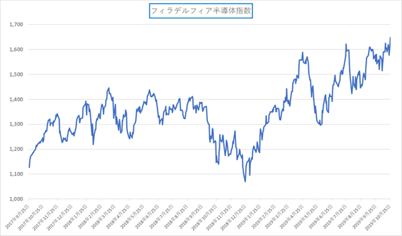 そうした流れを総合するかのように、フィラデルフィア半導体指数も下図のように過去2年間の最高値を更新して終わっている。