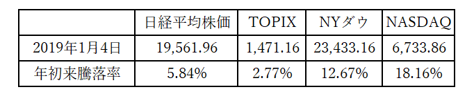 年初来の騰落率で比較すると、この傾向はもっと顕著になる。下表は公平を期すために日本市場の大発会となる1月4日付の各株価指数と、先週末8月30日の終値を比較したものだ。差が大きいTOPIXとNASDAQを比較した場合、NASDAQは約6.6倍、差が小さい方の日経平均株価とNYダウを比較しても約2.17倍は米国市場の方が上昇していることがわかる。
