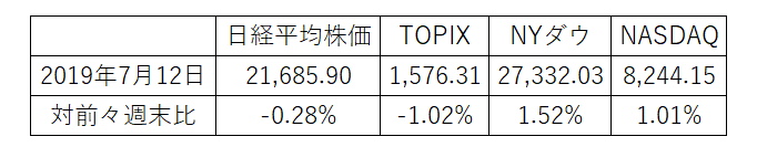 先週(7/8~7/12)の日米各株式市場の騰落率は下記の表の通り。今週はNYダウが初の27,000ドル乗せ、S&P500が初の3,000pts乗せ、そしてナスダックも高値更新と、米国市場からは景気の良い話が随分と聞こえた。しかし、ご覧頂けるように、日本市場の株価指数は日経平均もTOPIXも対前週末対比で共にマイナスだ。なんとも不甲斐無い。